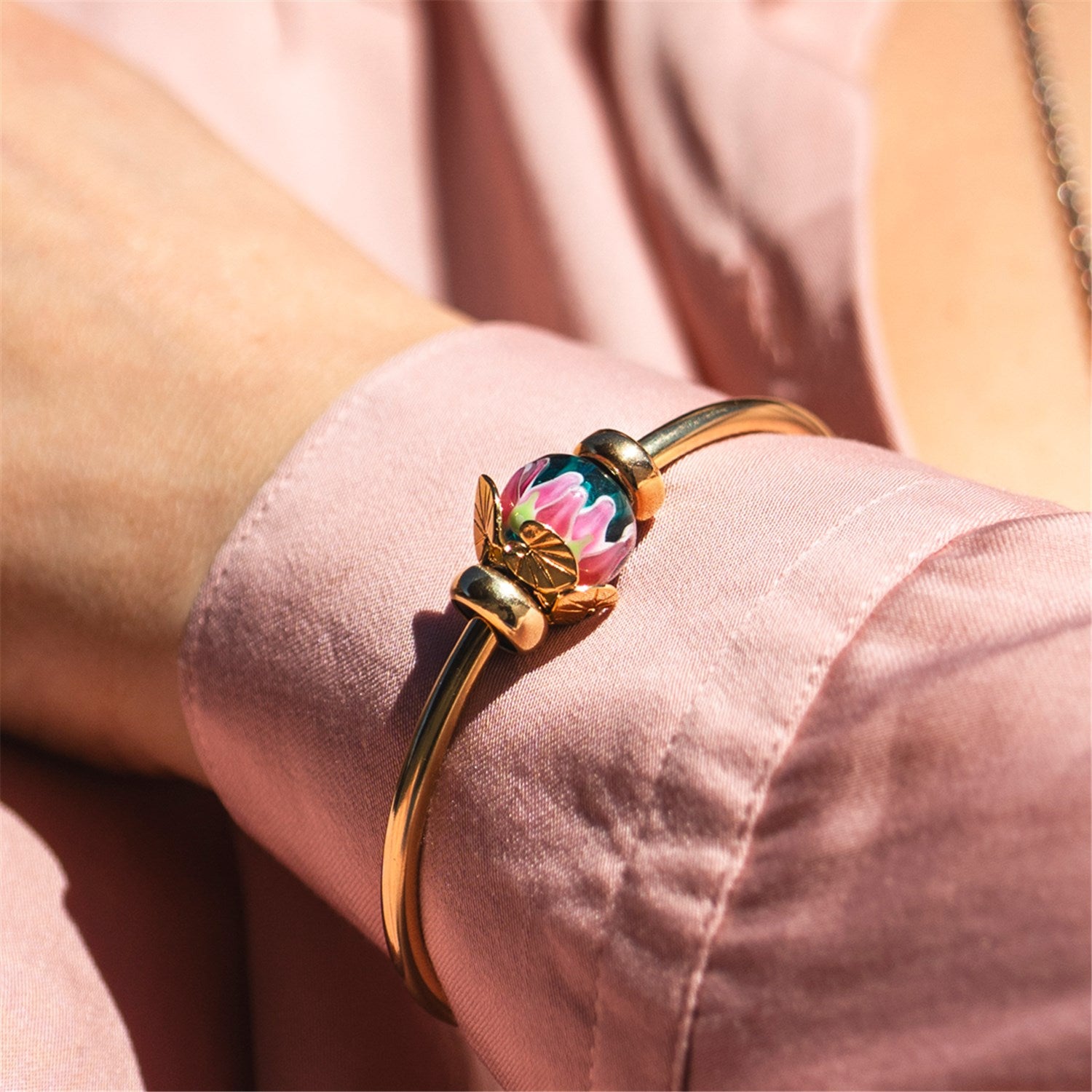 Cradle your dreams like a lily cradles morning dew. Luxuriously plated with 18K gold.
